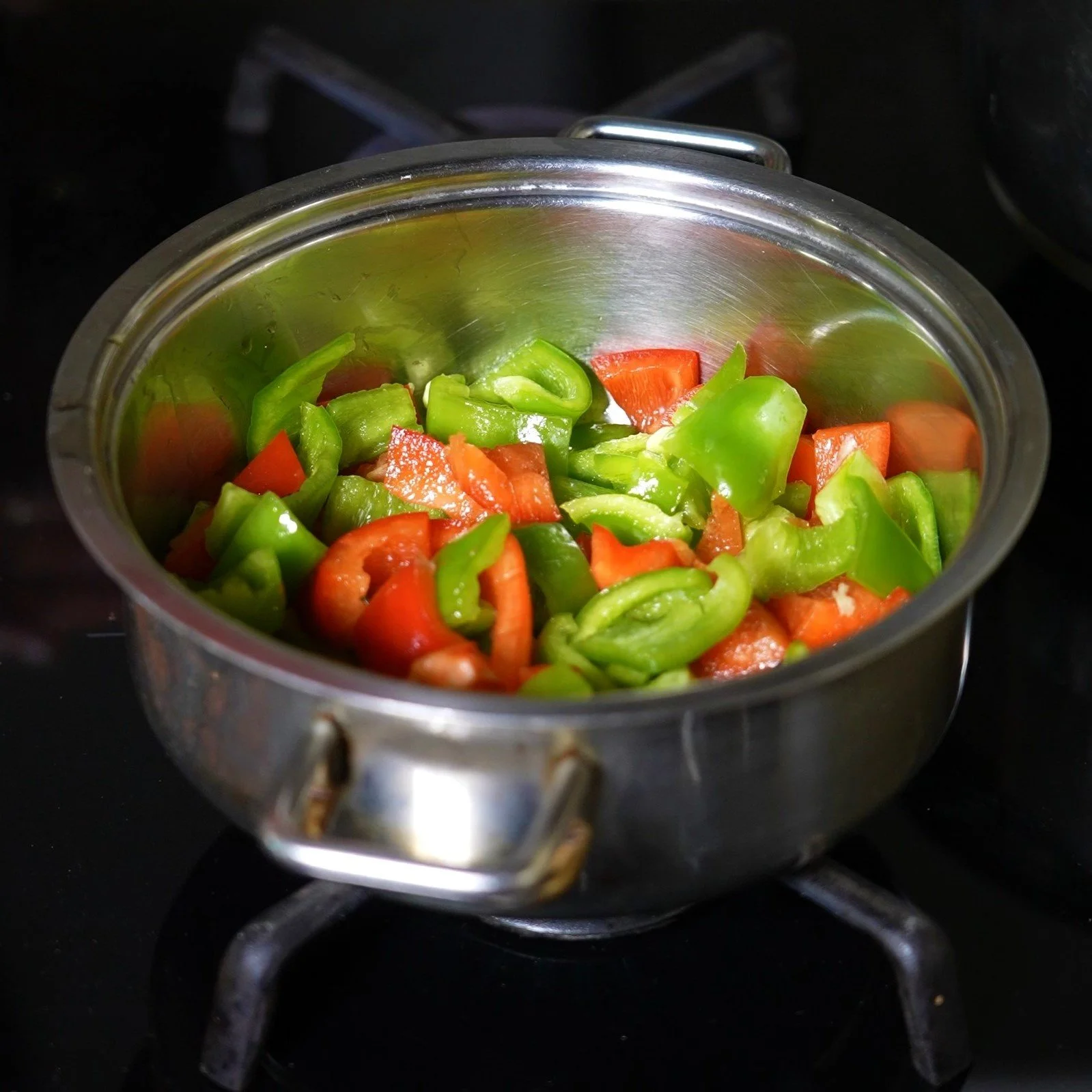 In un’altra padella saltate i peperoni per qualche minuto con abbondante olio d’oliva e aggiungeteli poi al resto delle verdure. Salate e aggiungete altro sale solo alla fine se fosse necessario. La peperonata è pronta quando le verdure risultano morbide. È perfetta sia accompagnata da una fetta di pane sia come contorno per un secondo piatto.