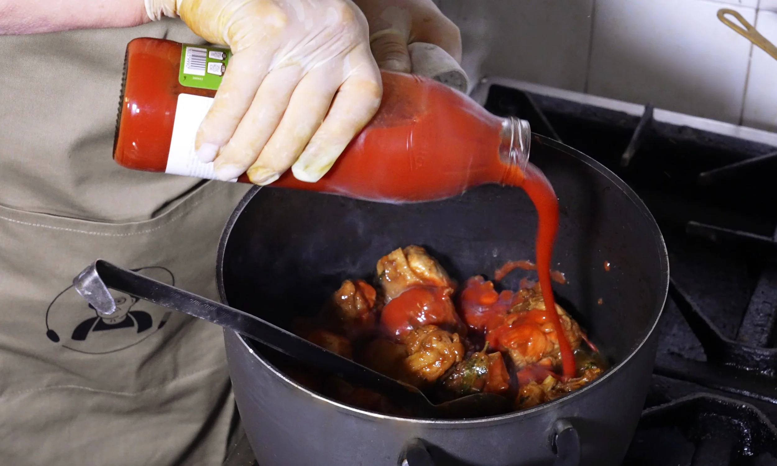 Dopo 20 minuti aggiungete la salsa di pomodoro e fate cuocere per circa un’ora e mezza. Quando il sugo inizia a bollire aggiungete ancora acqua così da coprire quasi del tutto la carne, che alla fine deve risultare tenera.