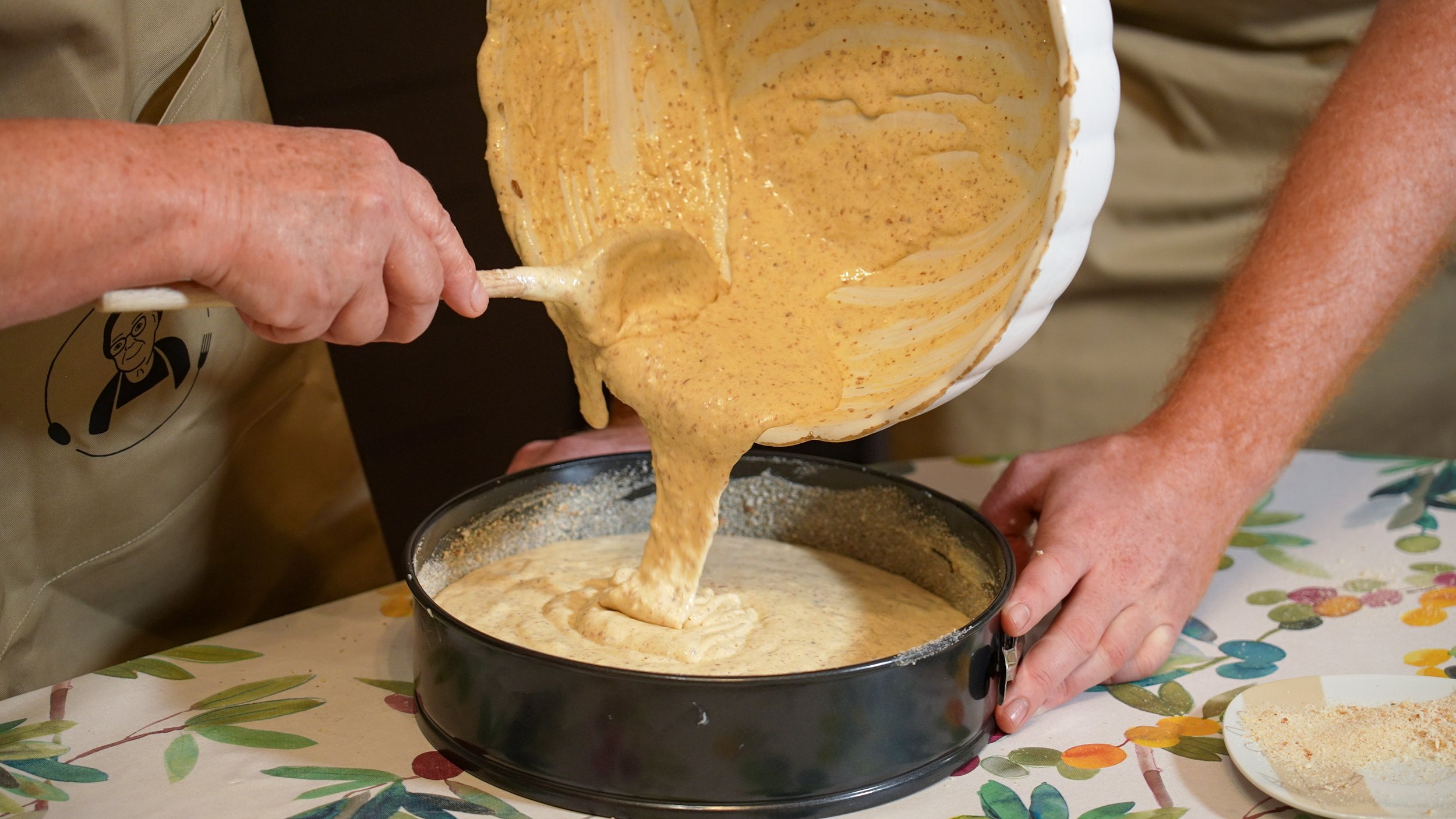 In un’altra ciotola montate gli albumi a neve ben ferma. Poi unite gli albumi montati all’impasto, poco per volta, mescolando con movimenti ampi e delicati dal basso verso l’alto. Questo gesto permette di mantenere l’aria intrappolata negli albumi, garantendo una torta morbida e leggera. Preparate la teglia ungendola con un velo di burro e spolverandola con pangrattato, eliminando l’eccesso. Versate l’impasto nella teglia e inseritela nel forno ancora freddo un dettaglio che fa la differenza!
