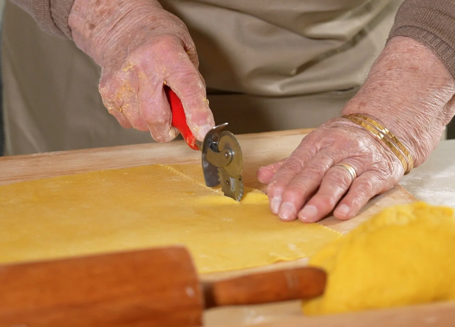 La signora Gina prepara questa ricetta fin da quando era bambina, quando aiutava la mamma e la nonna in cucina. La ricetta è stata modificata nel tempo perché oggi non si trovano più gli stessi ingredienti e perché la signora Gina ora usa una tecnica diversa. Gina conserva la sua ricetta scritta a mano in un taccuino, noi ve la lasciamo di seguito. I crostoli sono un dolce delle festività di Carnevale. Vengono chiamati in tanti modi, da chiacchiere a galani, ma una cosa è certa: sono davvero buoni! Per questo è necessario avere una buona ricetta da riproporre tutti gli anni. In ottant’anni la signora Gina ha preparato tanti di quei crostoli che si può dire che siano a prova di pasticceria!