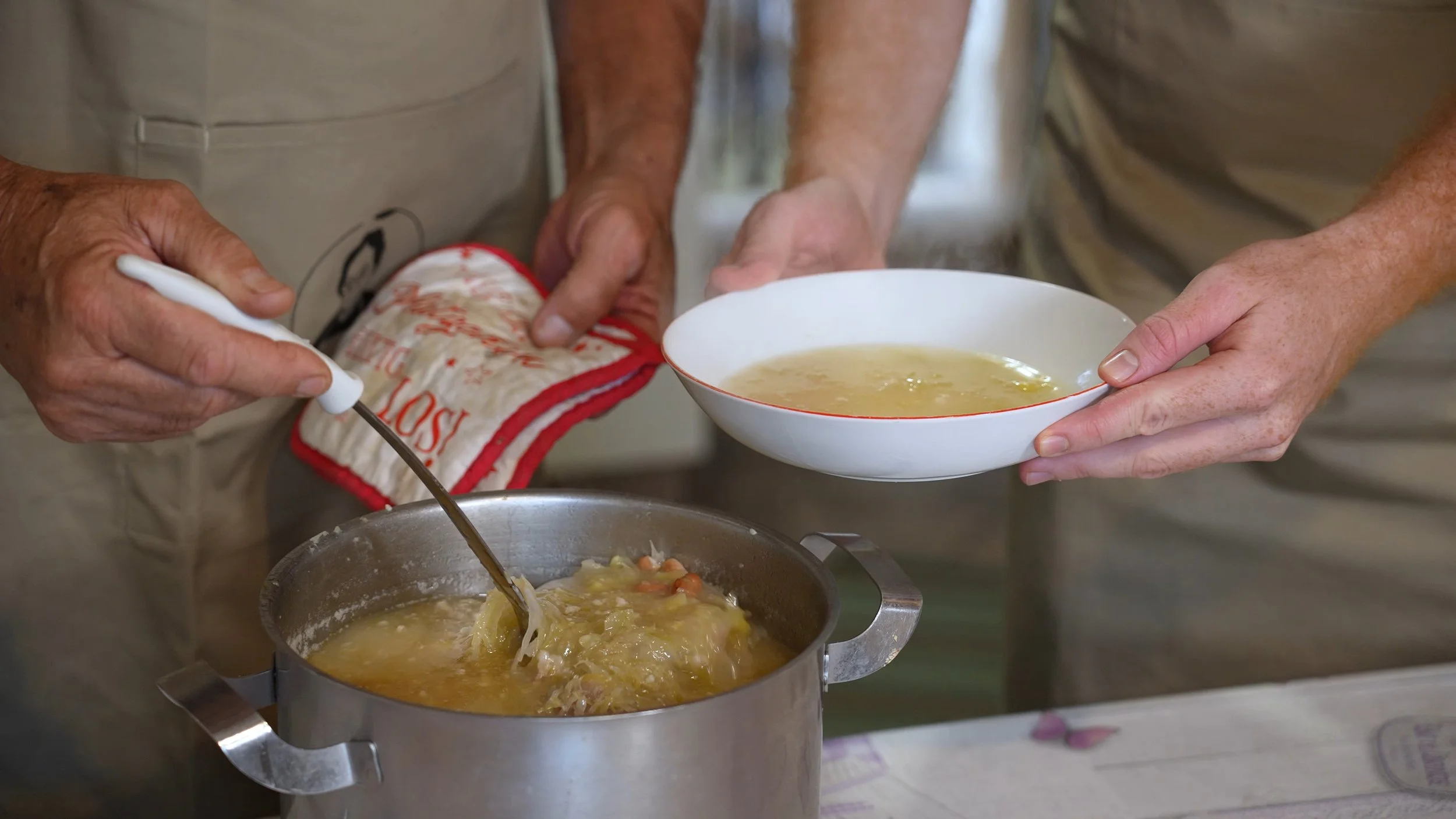 Oggi la jota viene vista come un piatto relativamente elaborato; tuttavia, un tempo era uno di quei piatti poveri ma molto abbondanti. La jota si preparava solamente d’inverno, quando il cavolo cappuccio era di stagione e quando si macellavano i maiali. Sebbene oggi si usino tagli di carne un po’ più pregiati per prepararla, una volta si usavano molto più spesso gli scarti della macellazione. Il signor Silvano ha imparato questa ricetta osservando sua madre mentre cucinava e ora noi possiamo fare lo stesso osservando lui.