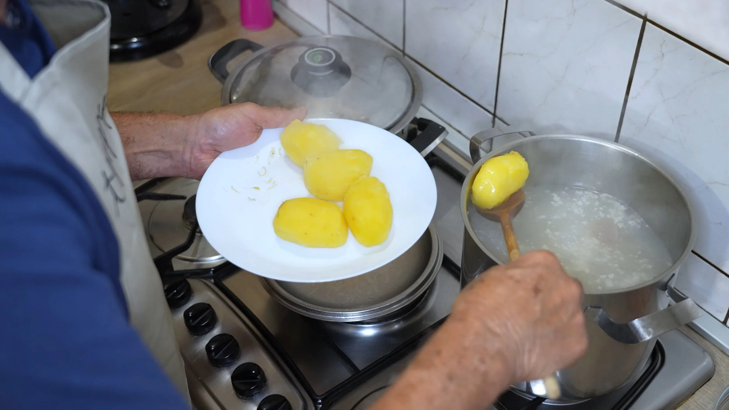 Mentre i crauti e le costine proseguono la loro cottura, dedicatevi alla minestra. Prendete una grande pentola e versate due litri d’acqua. Immergete le patate intere, precedentemente pelate, i pezzi di prosciutto, i fagioli freschi (o secchi, purché siano stati ammollati nelle 24 ore precedenti) e la metà di pesto rimasta. Quando le patate sono ben cotte, trasferitele su un piatto e, con una forchetta, schiacciatele fino a ridurle in purea.
