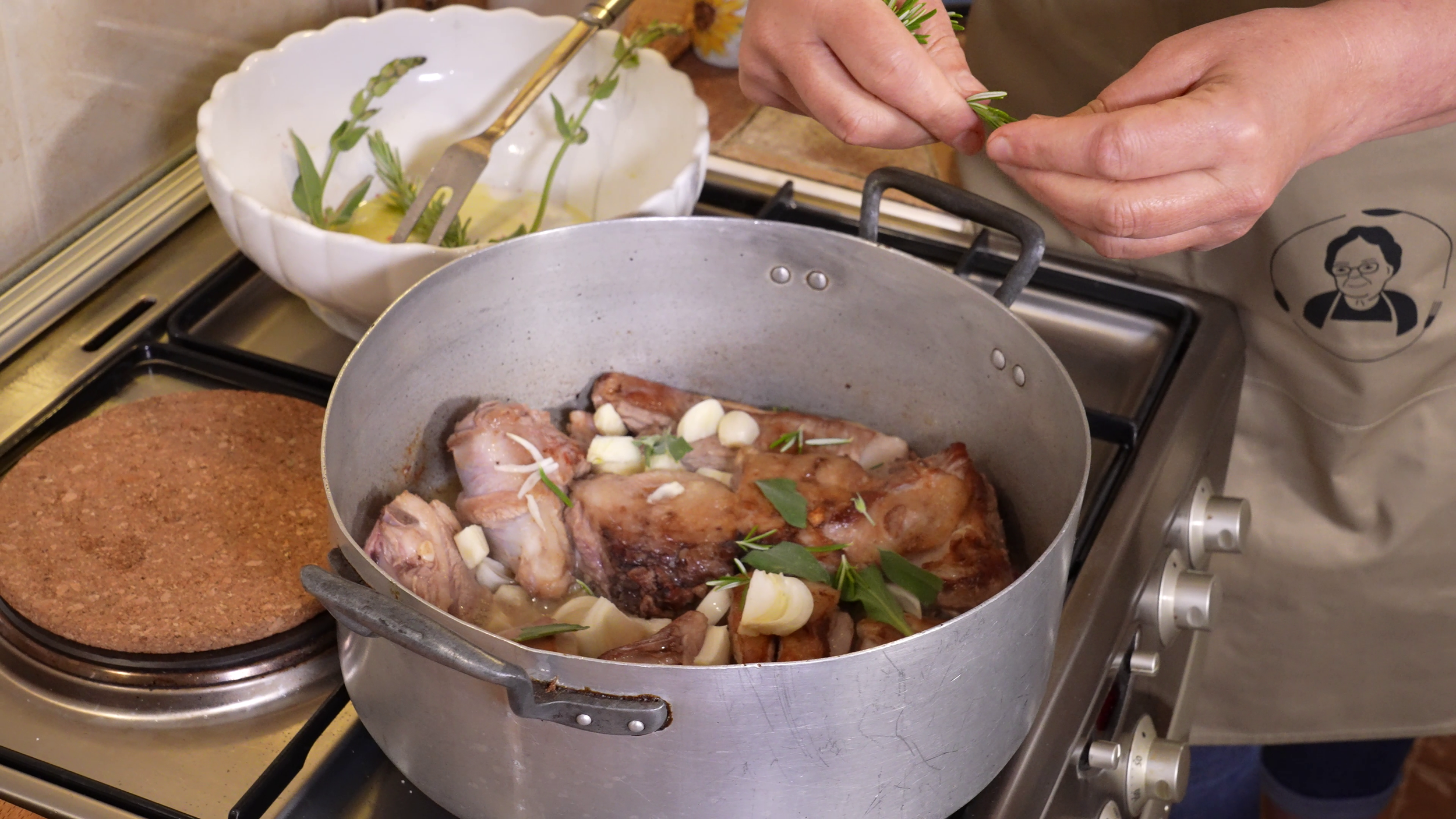 La ricetta dell’agnello in tecia (agnello in umido) della signora Vivien è una ricetta della sua bisnonna che gestiva un ristorante. Vivien ha dei bellissimi ricordi della sua bisnonna Maria e del suo ristorante, tanto che la pentola che usa per preparare questo piatto veniva usata proprio in quel ristorante. Pensate che ha più di 100 anni! Come spiega Vivien, questa è una ricetta per le occasioni importanti e le grandi feste: Pasqua, battesimi, Capodanno e così via. Lei solitamente all’agnello accompagna i “bisi soffigai”, ma a piacimento potete accompagnarlo anche con altri contorni di verdure.