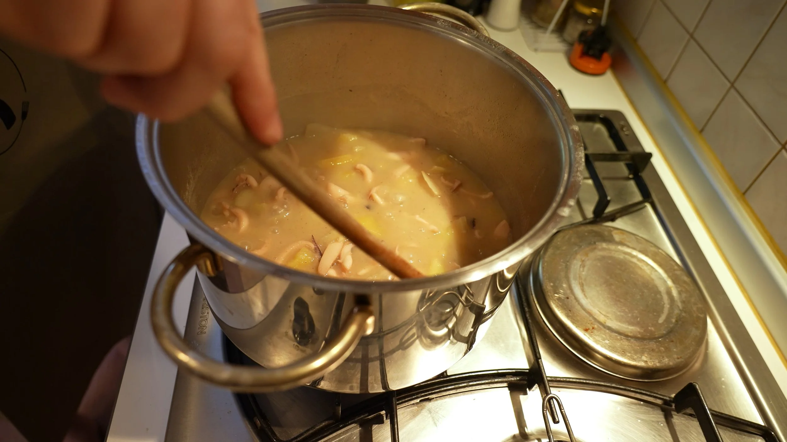Proseguite la cottura a fuoco lento per circa 45 minuti, mescolando di tanto in tanto, finché le patate non si ammorbidiscono. A questo punto, il vostro delizioso sugo di seppie con patate e finocchio è pronto per essere servito. Buon appetito!