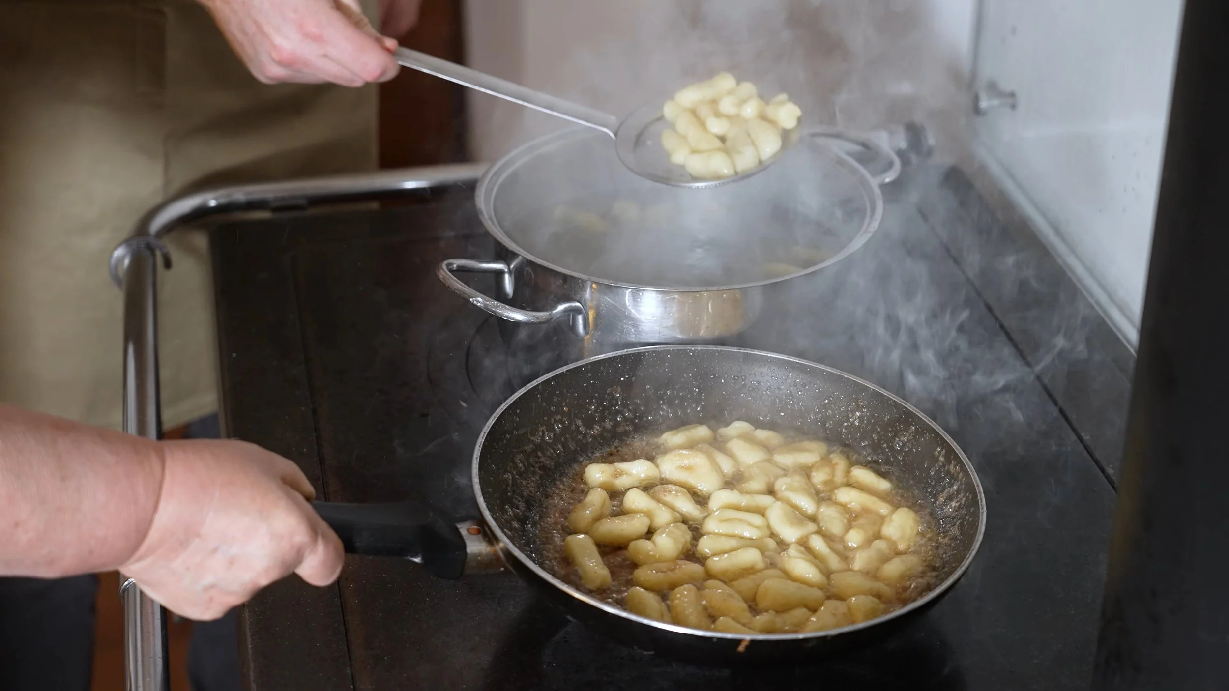 A Verona, ci spiega la signora Loretta, si cresce con gli gnocchi. Questo piatto, anche se con salse diverse, fa parte della tradizione veronese, e nello specifico di quella di Carnevale. Infatti, in onore della maschera di Verona (il Papà dello Gnocco), il venerdì di Carnevale tutte le famiglie preparano gli gnocchi. Noi vi proponiamo questa versione con zucchero e cannella: da leccarsi i baffi!