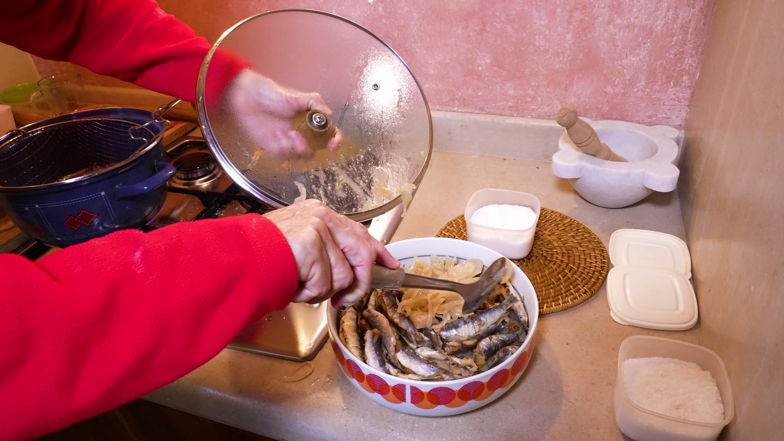 Le sardele in savor sono una ricetta antichissima che nacque dall’esigenza di poter conservare il più a lungo possibile il pesce appena pescato. La signora Manuela ha imparato questa ricetta da sua nonna Maria che le ha lasciato un quadernino con tutte le sue ricette tra cui quella delle sardelle in savor. Questo piatto le ricorda l’infanzia ed ora lo ripropone anche a casa per la sua famiglia. Non è una ricetta difficile, ci vuole solo un po’ di pazienza e il risultato è assicurato!